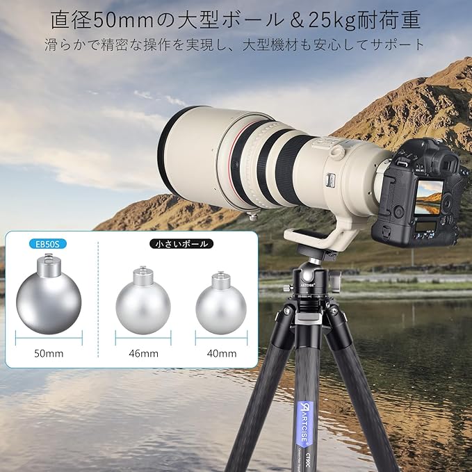 【50mm大型ボールで高耐荷重】精密加工された50mmボールを採用し、強力な固定力と優れた保持性能を発揮。プロ向け機材にも安心して使用できます。