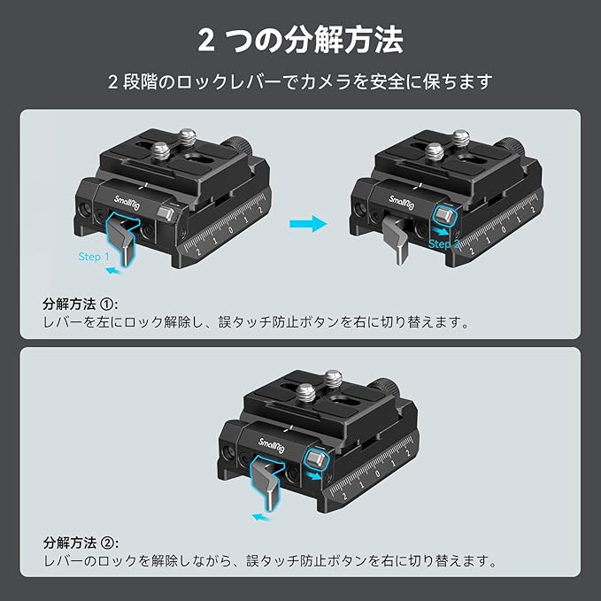 【強力な互換性】SmallRig マウンティング プレート セット (アルカスイス用 / マンフロット用) は、ユーザーのシーン移行を効率化するように設計されています。 幅はノブで素早く調整できるため、市販されているほとんどの Arca 用クイック リリース プレートとの互換性が保証され、互換性に関する懸念がなくなりました。