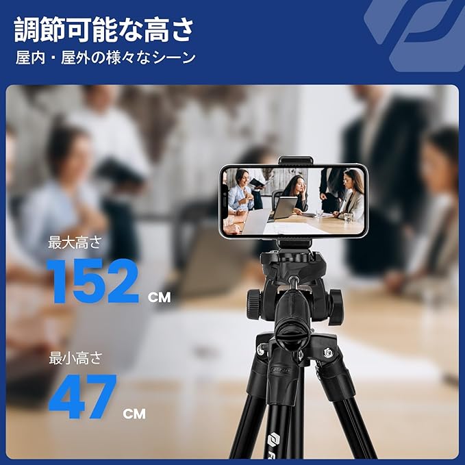 軽量1.1kg 収納46cm キャリングバッグ付き — どこでも持ち出せる旅行三脚 アルミ合金製で重量わずか1.1kg。折りたたみ時46cmでリュックのサイドポケットに。最大152cmまで伸長し、旅先・アウトドア・撮影現場を選びません。専用キャリングバッグ付きで持ち運びも快適です。