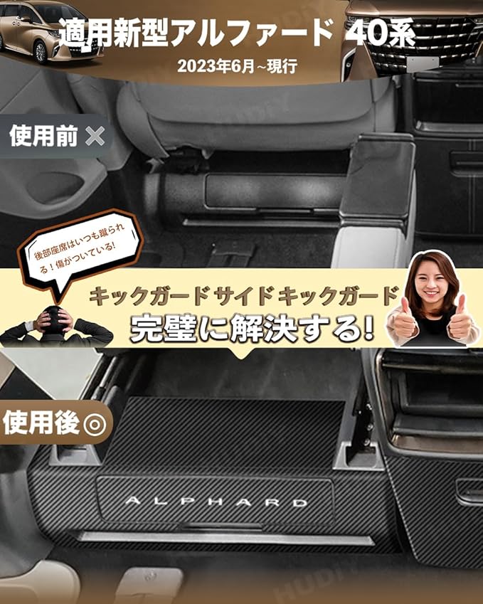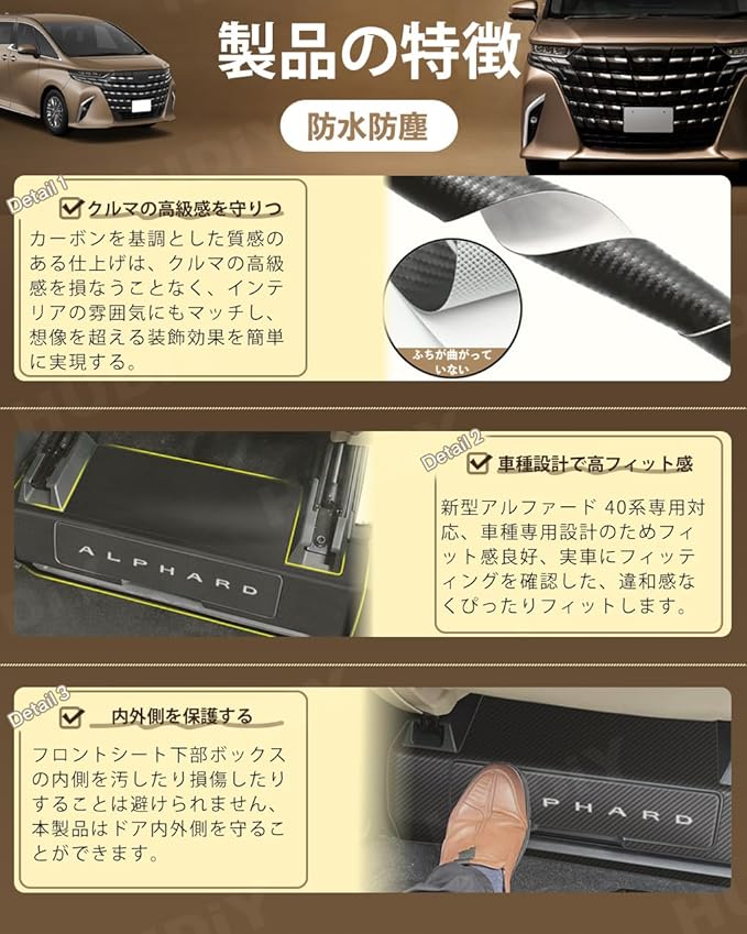 アルファード 40 系 専用 キックガード サイド キックガード AAHH40W AAHH45W (2023年6月~現行) バックキックマット 車種設計 専用ロゴ PUレザー材質 フットサイド 内装パーツ カスタム 保護パーツ 汚れ防止 キズ防止 日本語の取り付け説明書付き カーボン柄
