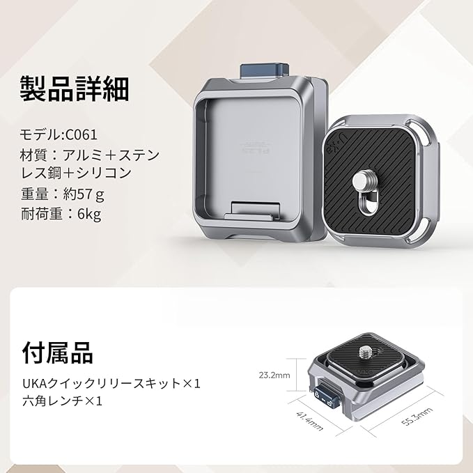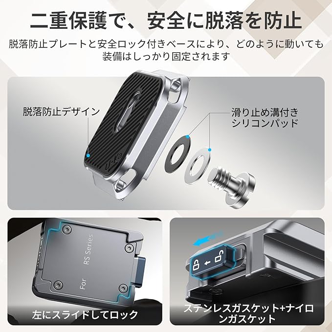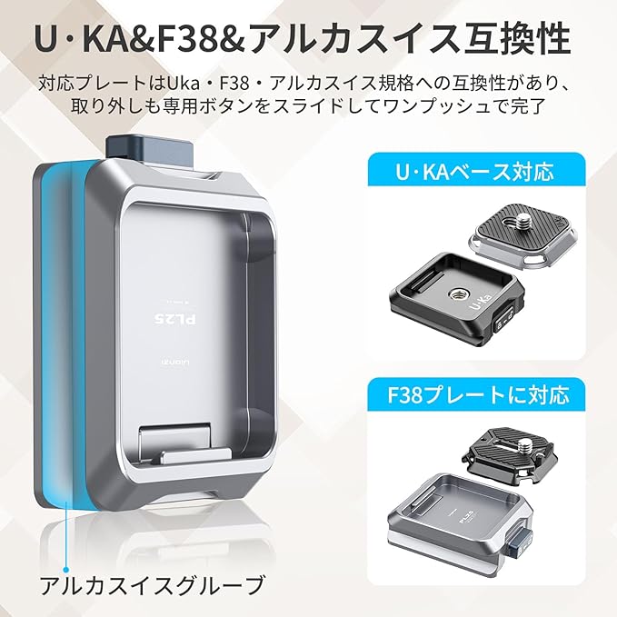 Ulanzi RS4Miniスタビライザー用 Uka用クイックリリースセット F38プレート対応 カメラアクセサリー アルカスイス溝 クイックシュー クイックリリースプレート クイックマウント 緩み防止 1/4"ネジ RS2/3/3pro/4/4pro/RS4Mini/Maglink/ストラップ/雲台/三脚/カメラ用