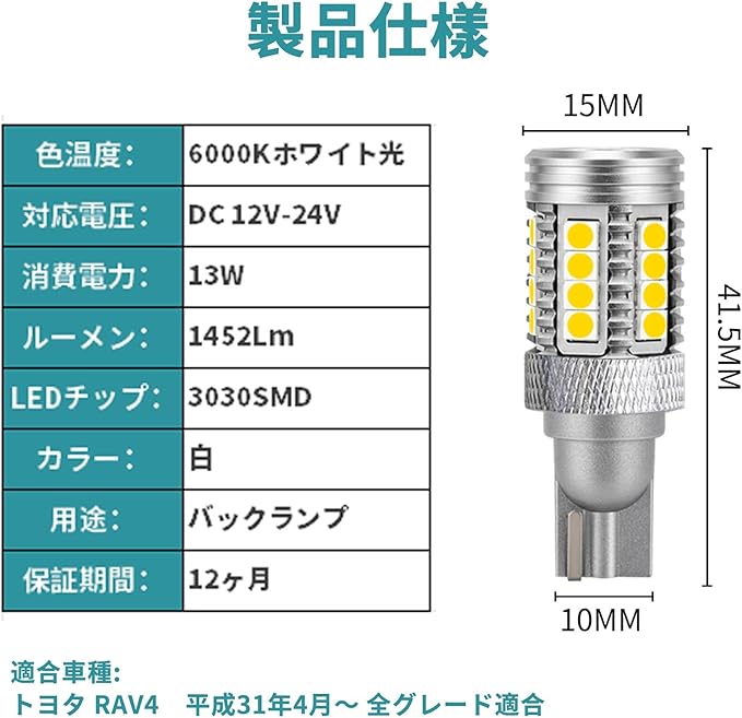 OTORAM互換/交換可能なRAV4互換LED Taillight T16 コンテンツの設定:LED電球の1グループ(2個)