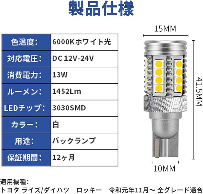 KONPON ライズ ロッキー 対応 リアライト トヨタ ダイハツ 6500K/LED/T16 2600LM 2個 バックライト ZESチップ リアテール装飾 アクセサリー カスタマイズ/簡単な取り付け/簡単な取り付け