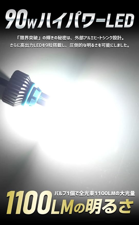【光量】1100LM 2個 圧倒的な明るさ