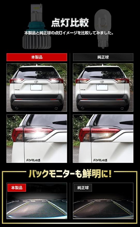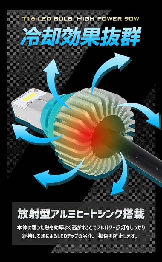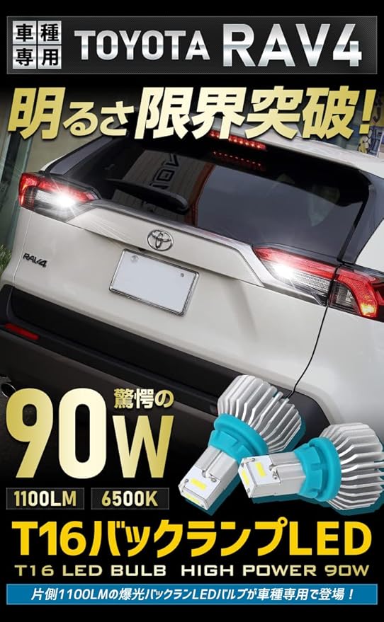 RAV4 T16 90W バックランプ LED バルブ CSPチップ 搭載 ハイパワー ホワイト アルミヒートシンク搭載 無極性 ホワイト 2200LM 2個セット カスタム パーツ アクセサリー ドレスアップ [2] M