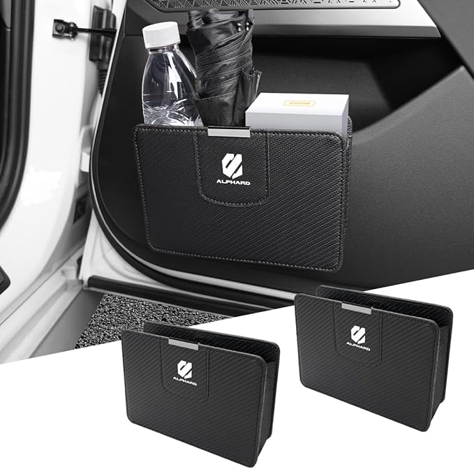 アルファード 専用 車用 ゴミ箱 収納ボックス ALPHARD 専用ロゴ 小物入れ ごみ入れ 折り畳み式 アルファード 20系 30系 40系 適用 車 多機能 ドア収納ケース 省スペース マグネット式 シートバック装着 取付簡単 カーアクセサリー(アルファード 専用,カーボン調・2個)