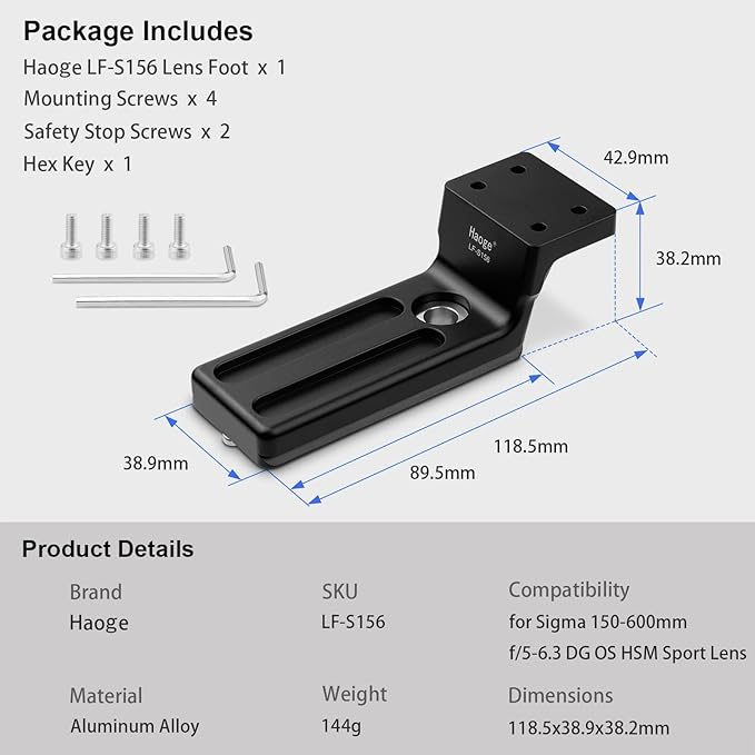 Haoge LF-S156 レンズ襟足三脚マウントリングスタンドベースfor Sigma 150-600mm f5-6.3 DG OS HSM Sports and 500mm f4 DG OS HSM Sports 組み込みArcaタイプクイックリリースプレート TS-81