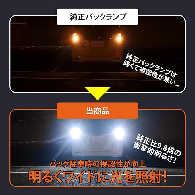 ホワイト発光で鮮明な視界: 白色LEDライトにより夜間の後退時の視界を明るく照らし、バックモニターとの組み合わせで安全性と視認性を両立した次世代LEDバックランプです