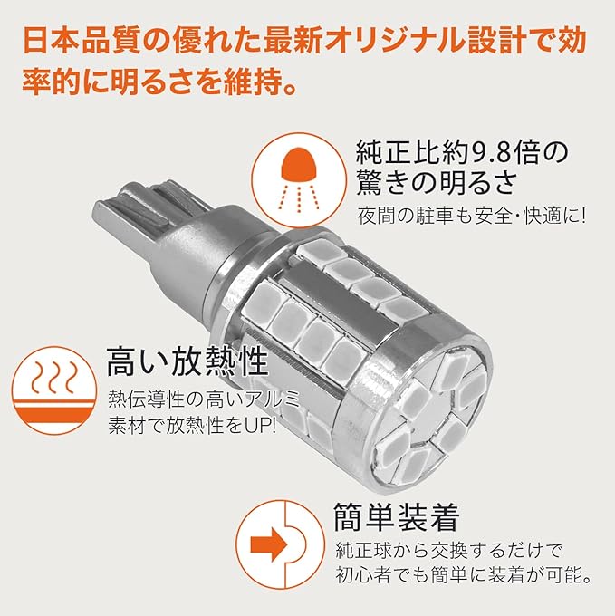 T20対応の高輝度モデル: T20型は6900lmの爆光仕様で、ウエッジ球タイプのシングル球として12v車両に対応し、車検対応の安心設計です