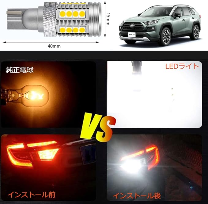 RAV4 50系適用/対応 専用設計 T16 50W バックランプLED 車検対応 無極性 BULB 2個1セット 6500K カスタム パーツ アクセサリー ドレスアップ (ホワイト)