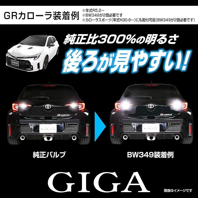 カーメイト(CARMATE) 車用 LED バックランプ ヤリス カローラツーリング ヴォクシー クラウンスポーツ 等に 明るさ純正比300% GIGA バックランプ S1400GS 6000K 1400lm 白色 光 トヨタ 純正 バックランプ 対応 BW349