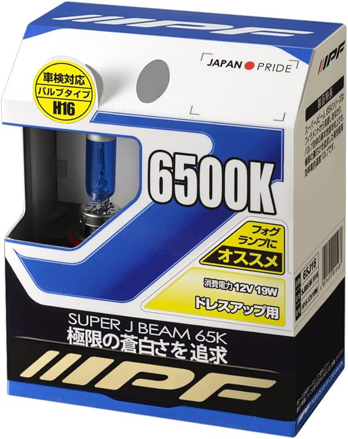 IPF ヘッドライト フォグランプ ハロゲン 車用 H16 6500K 蒼白光 12V用 2本入 車検対応 ドレスアップ重視 65J16