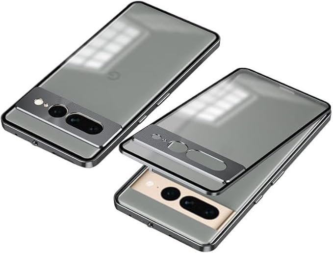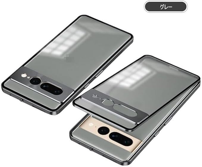 【Fotee】Pixel9 Pro 用バンパー ケース アルミバンパー かっこいい クリア 半透明 マット仕様 背面パネル (アクリル) カメラレンズカバー付き (強化ガラス) グーグル ピクセル9 プロ XL スマホケース スマホカバー (グレー, Google Pixel 9 Pro)