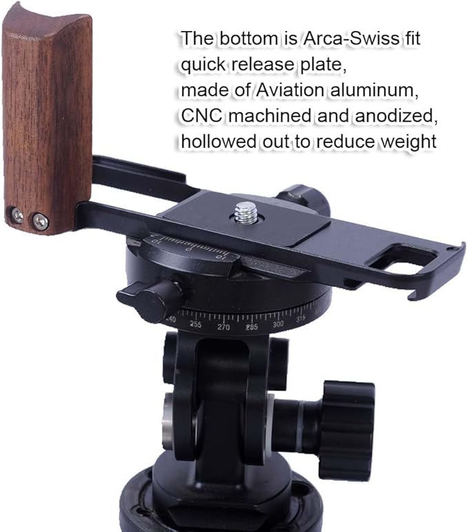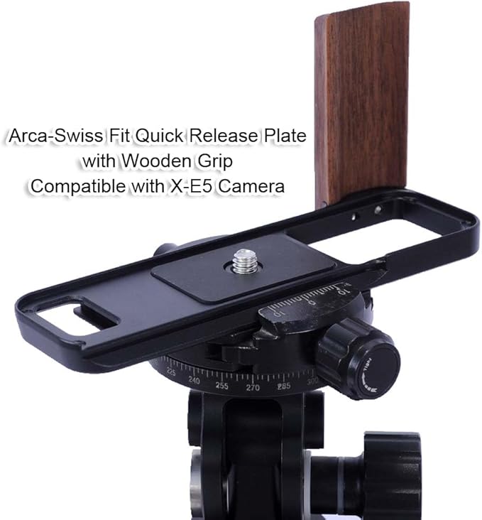 1. Fuji Fujifilm富士の互換性ありX-E5 カメラ対応,L-シェイプ Arca-Swiss Fitアルカスイス フィット クイックリリースプレート, 1/4"-20 ネジ穴、軽量 人間工学に基づいた木製ハンドグリップ。