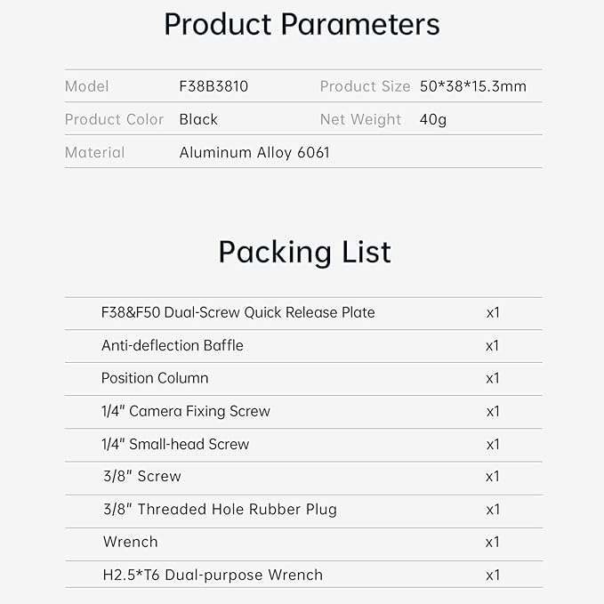 FALCAM F38&F50 デュアルスクリュークイックリリースプレート、1/4インチから3/8インチのスクリュー付きアルミニウムクイックリリースシステムQRプレート