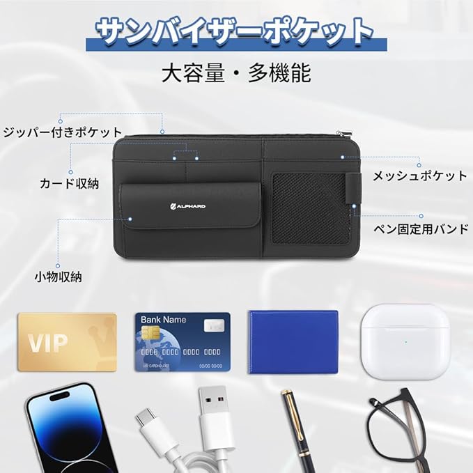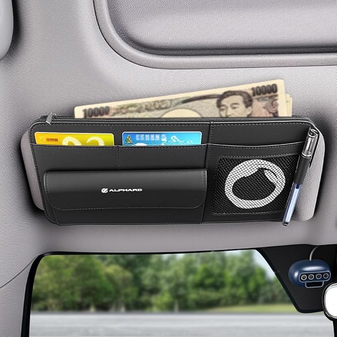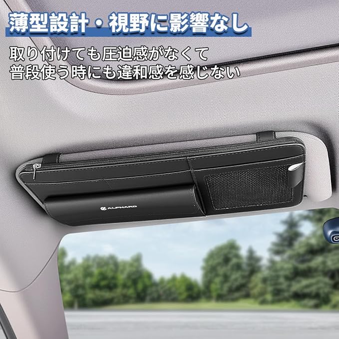 アルファード 適用 車 サンバイザーポケット 大容量 小物収納 マジックテープ式 アルファード 20系 30系 40系 対応 カー 収納ポケット 多機能 カード収納 ペン収納可能 サンバイザー 収納袋 高耐久性 防水&防汚 内装パーツ 薄型 取付簡単(アルファード 適用,1個)
