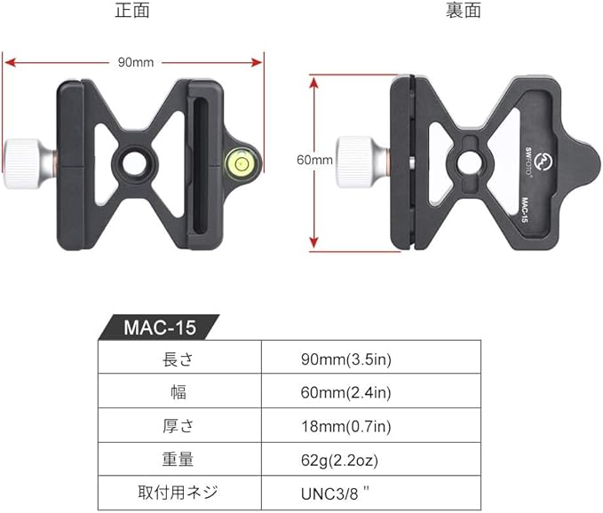 SWFOTO MAC-15 クイックリリース アルカスイス クランプ,に適用するManfrotto 200PL-14 プレート アルカスイス
