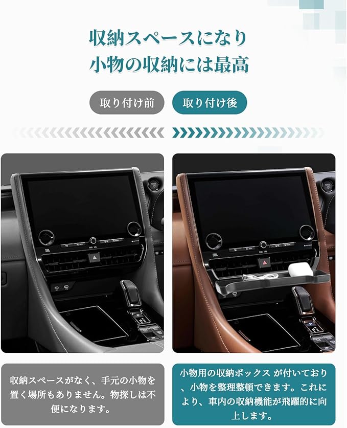 【収納不足を解消・収納トレイに活用】アルファード40のエアコン吹き出しエリアにぴったりで、スペースを最大限に活用し、収納力を大幅に向上させ、カード、コイン、メガネや鍵など、小物関係の収納には最高です。滑り止めのラバーマット付きで運転中のガタガタを防ぎます。非常に実用的な車用アクセサリーです。