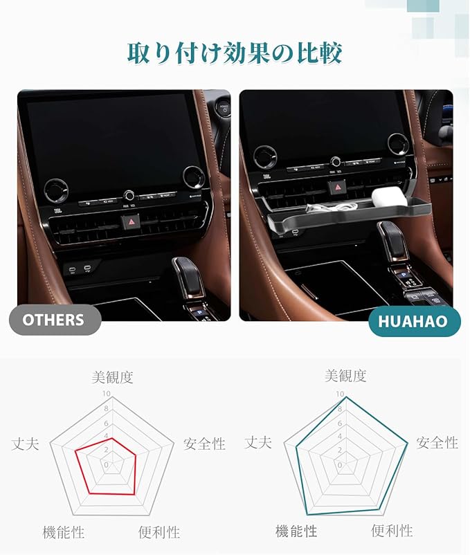 【車種専用・簡単取り付け】新型アルファード40専用に設計されたオリジナルデータを基に、3Dスキャン技術を採用し、センターコンソールにぴったり合うサイズです。センターコンソールに押すだけで、ジャストフィット!!!