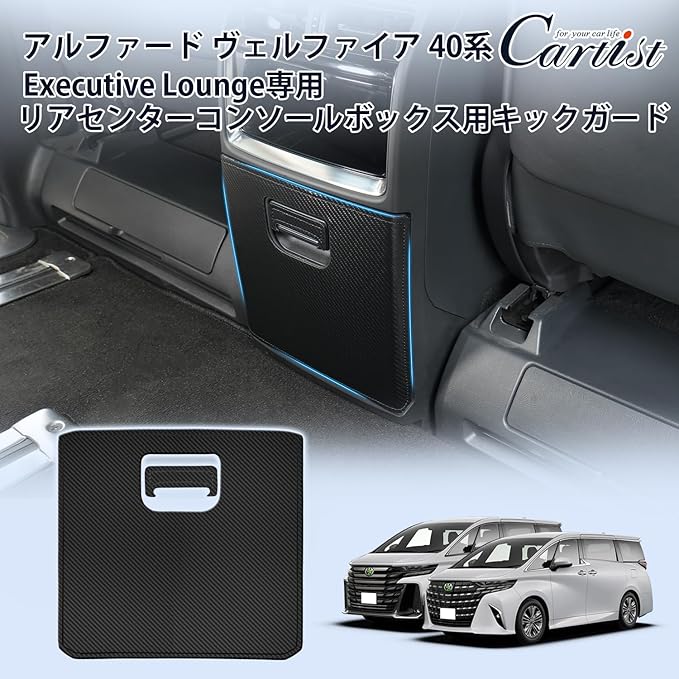 Cartist アルファード40系 ヴェルファイア40系 Executive Lounge専用 キックガード リアセンターコンソールボックス用 フットサイド ALPHARD VELLFIRE 40系 2023年6月~現行 後部グローブボックスガード 保護カバー 汚れ防止 キズ防止 蹴り防止 アクセサリー 内装パーツ カスタムパーツ PVCレザー 2PCSセット(カーボン調)