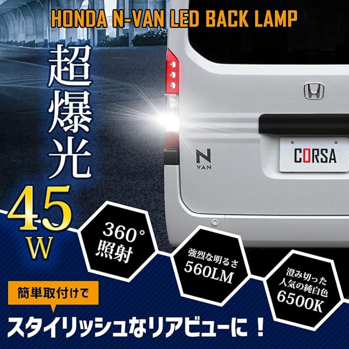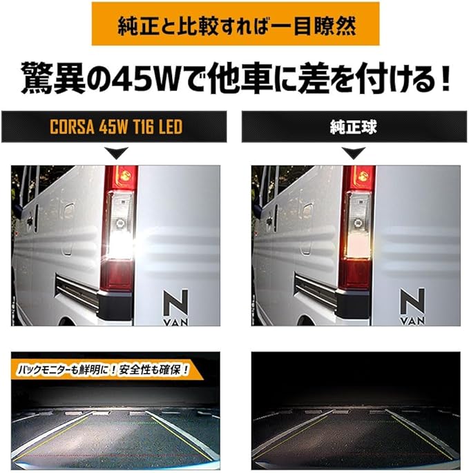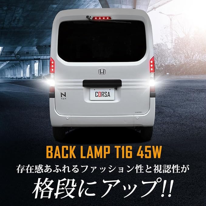 CORSA N-VAN 専用 バックランプ T16 45W パーツ ホワイト 白 LED化 純正交換 LED ライト カスタム インテリア ドレスアップ バックランプ バックライト 無極性 6500K HONDA エヌバン (N-VAN (バックランプ))