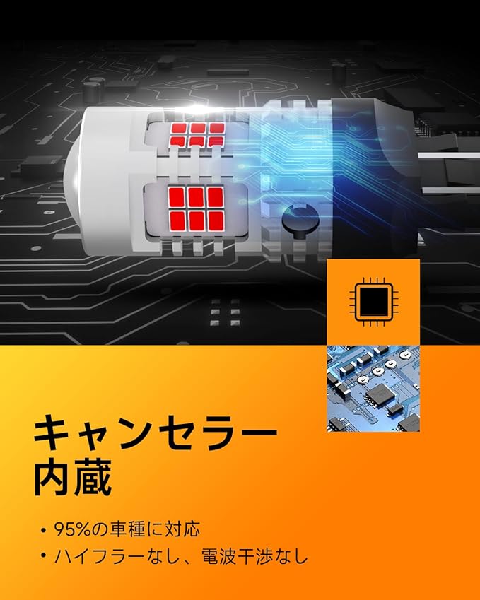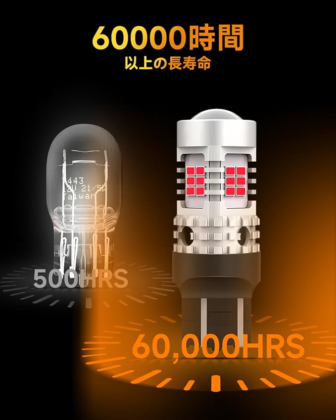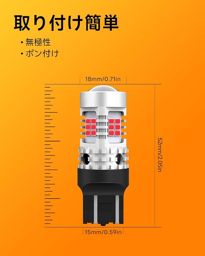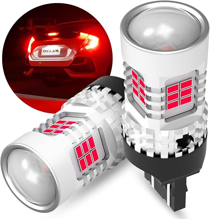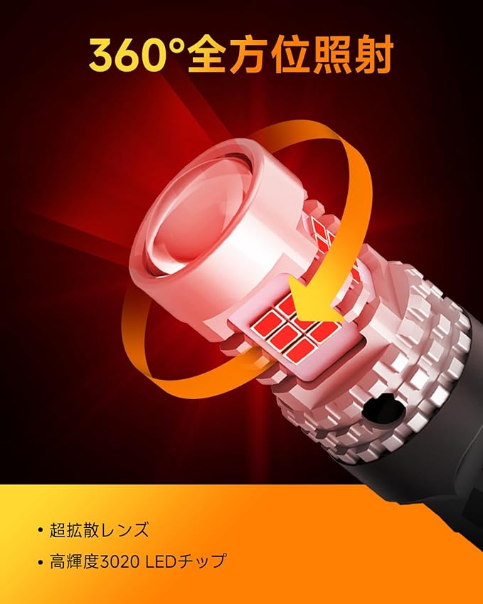 【高輝度 T20 led バルブ】OXILAM T20 ledブレーキランプは26連 3020SMDチップを搭載、ハロゲンの約3倍の明るさアップになります。純正と比べ鮮やかなレッドがワイドにムラなく広がることで、視認性が高まります。チップは均一に配置され、360 全方向照射可能です。ブレーキ時の明暗の差ははっきり、悪天候時にも高い視認性を実現、追突事故やその他の交通事故などを防ぎます。安全性が大幅に向上します。