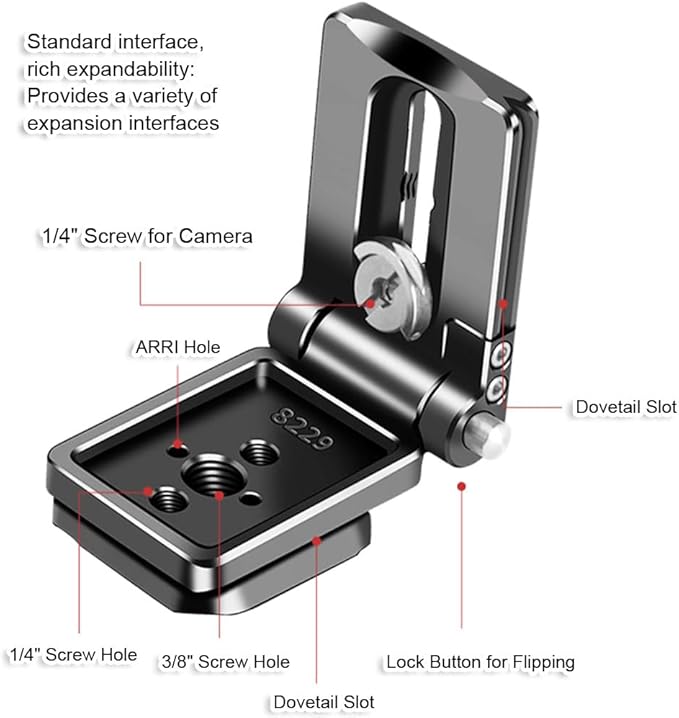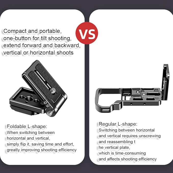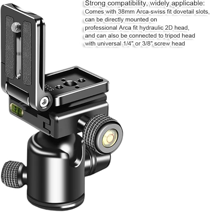 コンパクトで携帯可能な折りたたみ式L字型カメラクイックリリースプレート、38mm Arca-Swiss対応、チルト・横向き・縦向き撮影用のクイックスイッチ,アルカスイス対応三脚雲台クランプ用