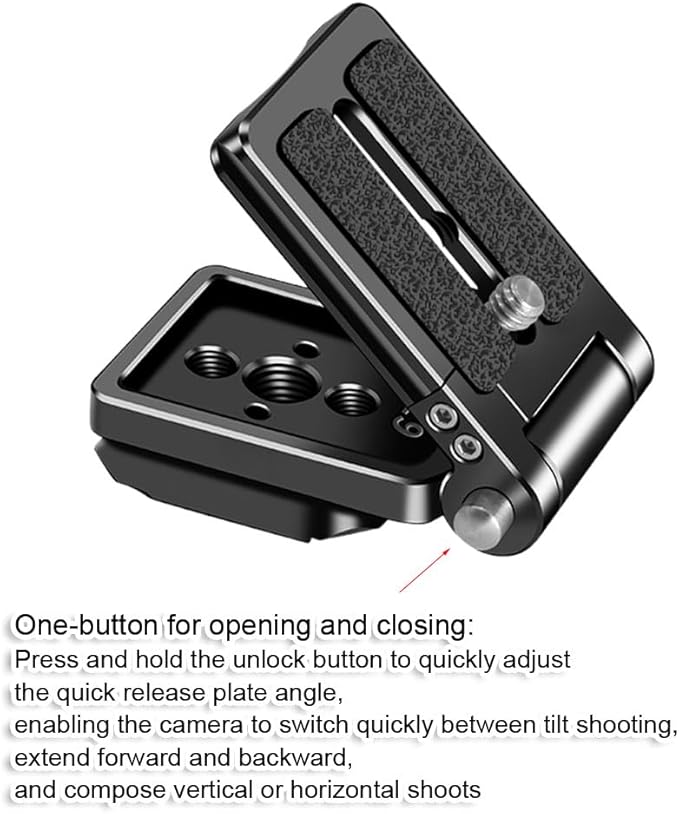 5. ワンボタン開閉:解除ボタンを長押しすることで、クイックリリースプレートの角度を素早く調整でき、カメラをチルト撮影、前後伸縮、縦横撮影間で迅速に切り替えることが可能。