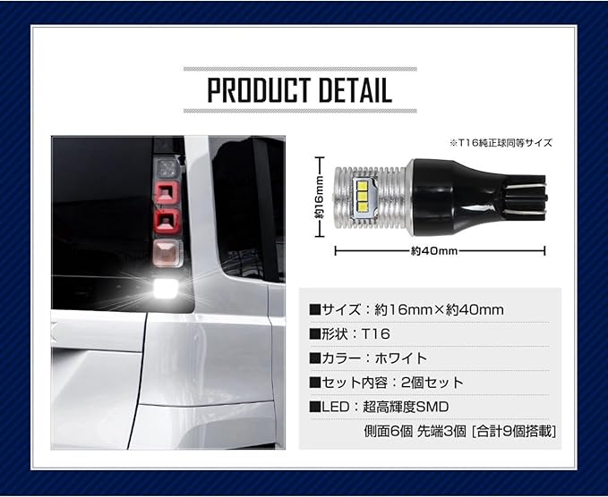 ✅ 超爆光45W・560LMで後方視認性アップ:超高輝度SMD LEDを9基(側面6+先端3)搭載。純正球を大きく上回る明るさで、夜間や暗所でのバック時も安心感を高めます。