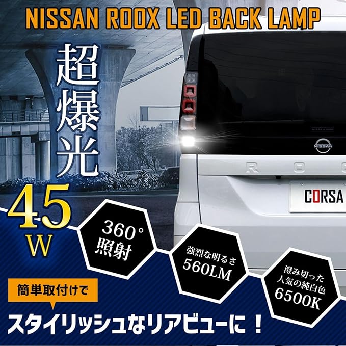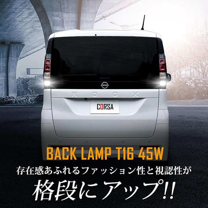 CORSA 新型 ルークス 適合 LED バックランプ T16 45W 2個1セット バックライト 無極性 6500K NISSAN ROOX 日産 カスタム パーツ アクセサリー ドレスアップ [2] M