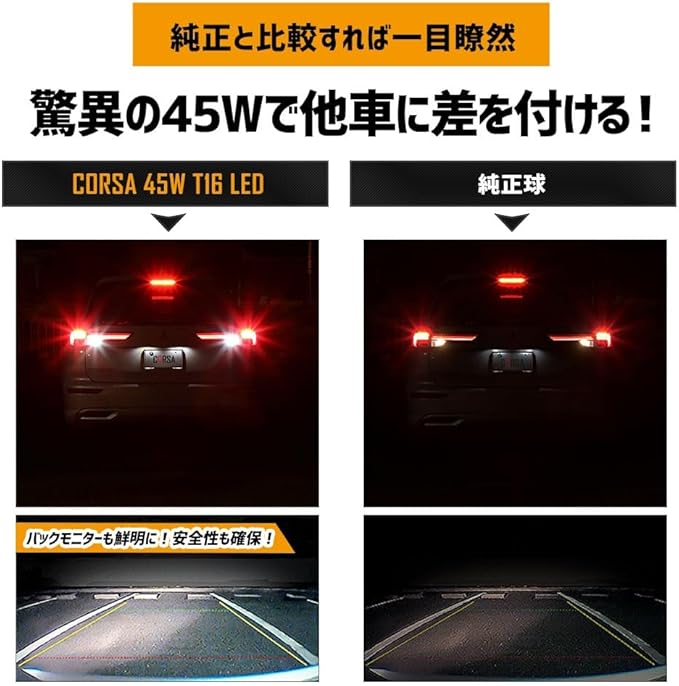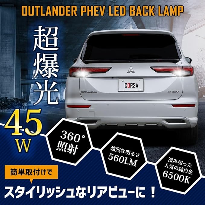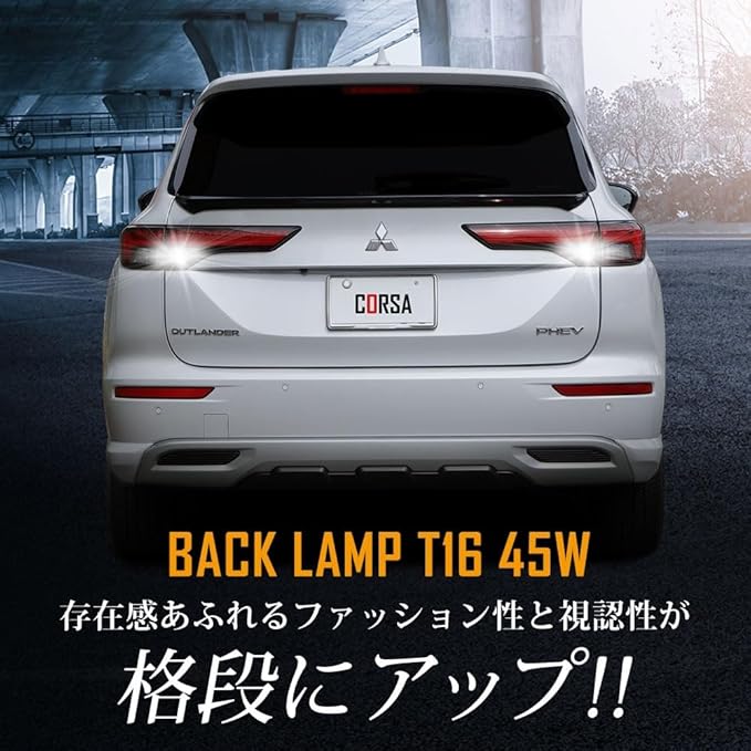 CORSA アウトランダー PHEV 適合 LED バックランプ T16 45W 2個1セット バックライト 無極性 6500K OUTLANDER カスタム パーツ アクセサリー ドレスアップ [2] M