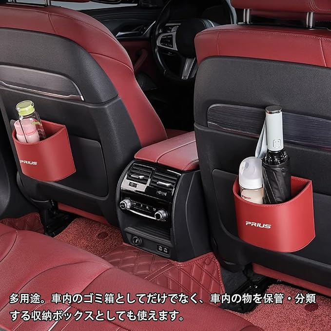 プリウス 専用 車用ゴミ箱 倒れない 車内 収納ボックス ドリンクホルダー 傘ホルダー 小物入れツーリング スポーツ 内装パーツ 専用ロゴ カーアクセサリー おしゃれ 便利グッズ 小型 運転席/助手席用 カー用品 多機能収納ボック 1個(レッド, プリウス Prius)