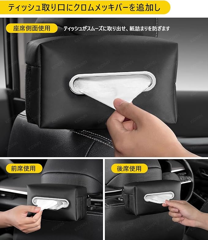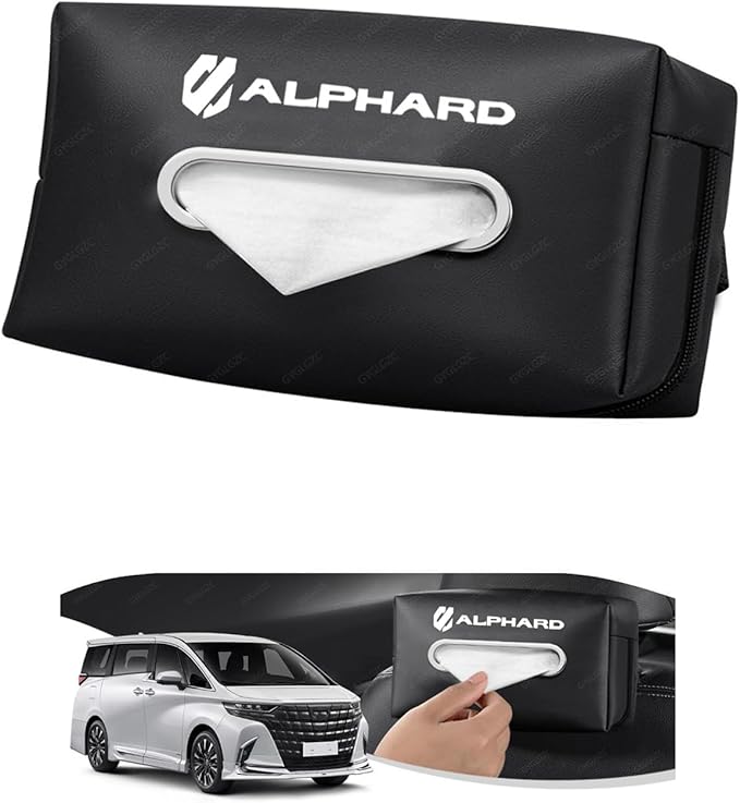 車用ティッシュケース アルファード 40系/30系/20系 全シリーズ用 ティッシュホルダー レザー材質 防水 簡単な片手操作 専用ロゴ 取り付け簡単 車内の品位を高める(アルファード専用)