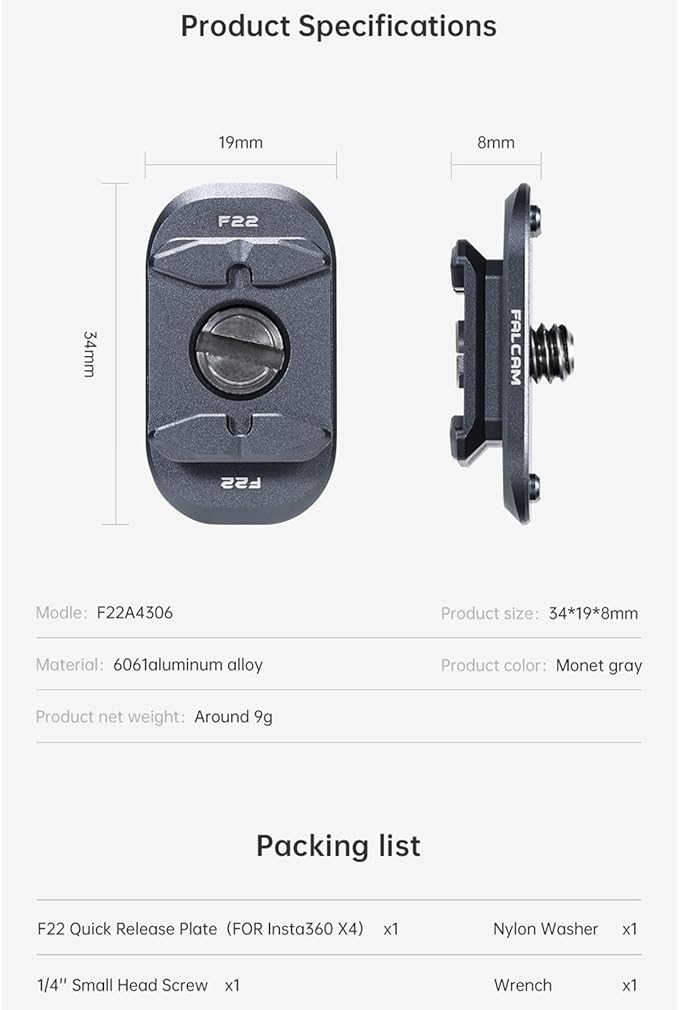 F22 クイックリリース プレート アクセサリと互換性があり、ネジ止めする必要がなく、素早く取り付け、取り外しができます。