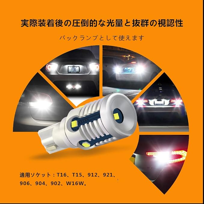 【無極性&取付簡単】【適用ソケット】:T16、T15、912、921、906、904、902、W16W取付も簡単、差し込むだけで使用可能です、手間がかかりません。また無極性から、どんな電極でも点灯もできる。ご注意:※全ての車種において動作保証はできません。一部の車種ではキャンセラーが機能しないです。
