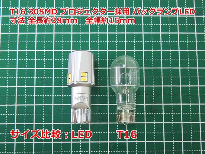 まめ電(MAMEDEN) T16 LED バックランプ 30SMD プロジェクター採用バック球 ホワイト 白
