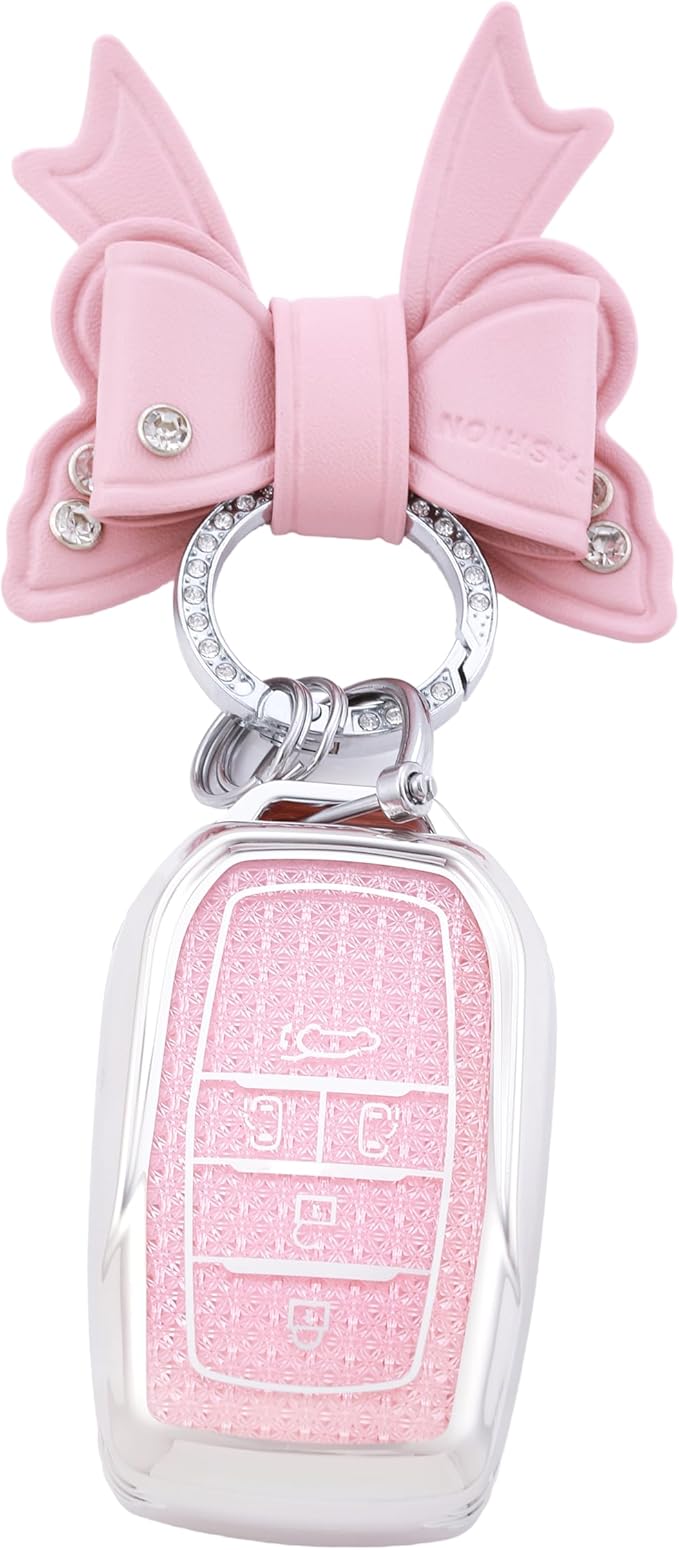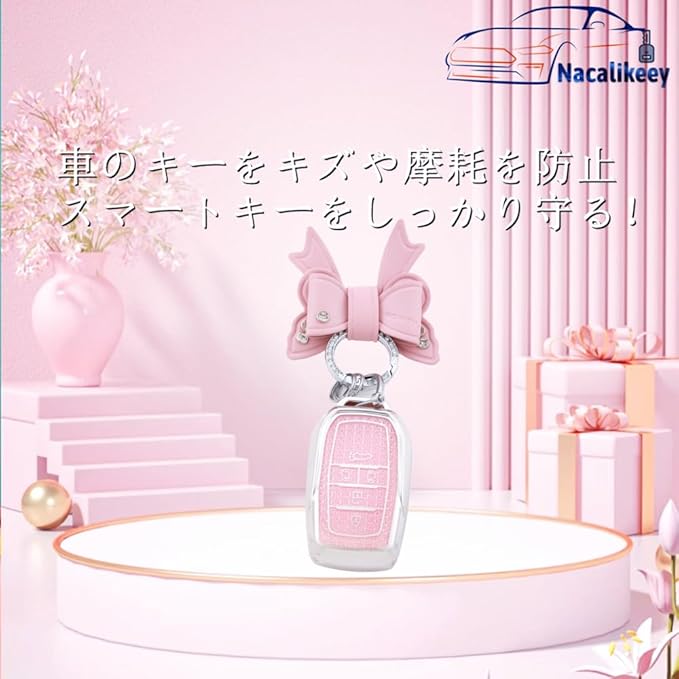 【Nacalikeey】可愛の蝶々デザインキーケースス適合新型 ヴォクシー ノア 90 系キーケース適合NOAH VOXY アルファードキーホルダー きらめきキーケースト適合シエンタ 15系 10系 SIENTA 15 10 系きらめき キーカバー華やかなスタイルわいいキーケース (5ボタン,ピンク)