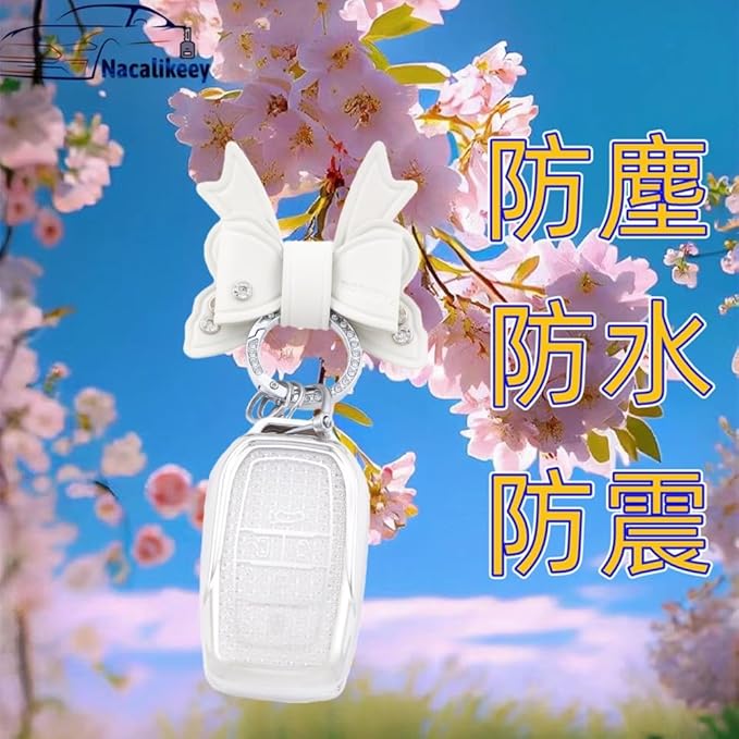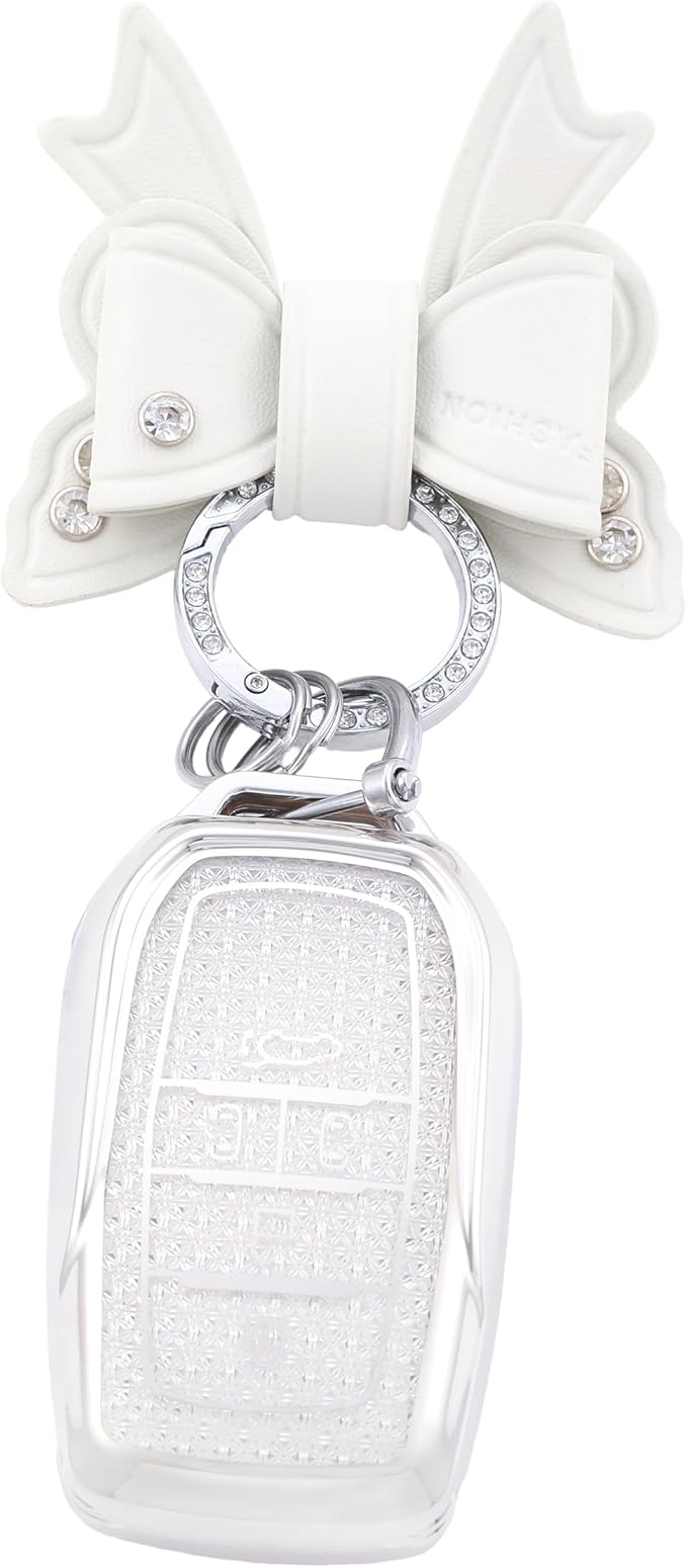 【Nacalikeey】可愛の蝶々デザインキーケースス適合新型 ヴォクシー ノア 90 系キーケース適合NOAH VOXY アルファードキーホルダー きらめきキーケースト適合シエンタ 15系 10系 SIENTA 15 10 系きらめき キーカバー華やかなスタイルわいいキーケース (5ボタン,ホワイト)