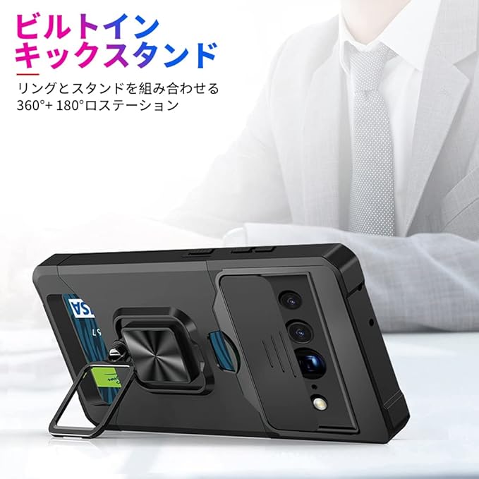 【スタンド機能&内蔵マグネット】360度回転スタンド、動画視聴にも、45 ℃角度調節自由自在に使, 一番最高の視角で鑑賞の同時ににお手を解放できます。金属製のリングと内装の金属フィルムは、車載の磁気吸盤にしっかりと吸着することができ、運転中に携帯電話のナビゲーションなどの機能をより便利に使用することができます。