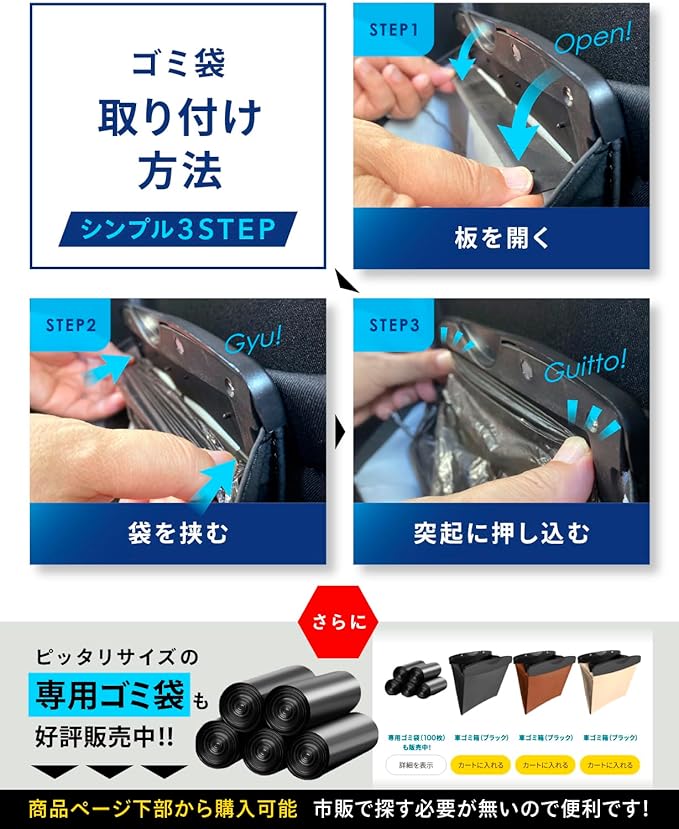 ✅【⭐保証&注意事項⭐】本製品は車のバックポケット専用ゴミ箱です。ポケットの厚みは最大6mm、横幅は19.5cm以内まで対応しております。ご購入前に必ずサイズをご確認ください。サイズ違いや初期不良などいかなる理由であっても、Amazonの定める期間に基づいて返品・返金の対応をいたします。【内容物】車 ゴミ箱 本体( 1)、専用ゴミ袋1ロール( 1)計2コ、取扱説明書1枚
