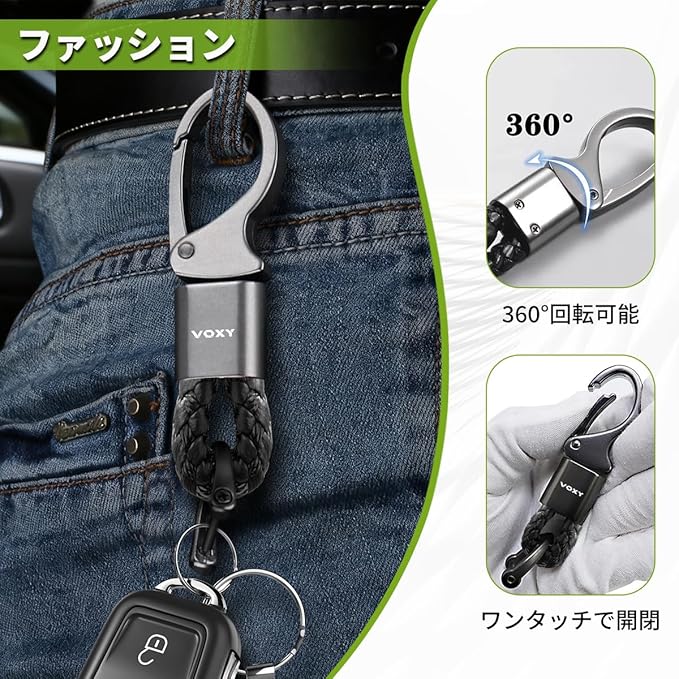 ✨【優れた耐久性】このキーホルダーは高強度の亜鉛合金で作られていて、酸化や摩耗に強く、長期間使うことができます。中央に360度回転する軸のデザインに加えて、上部はワンタッチ設計で簡単に開閉でき、キーを掛けたままでもスムーズに操作できます。