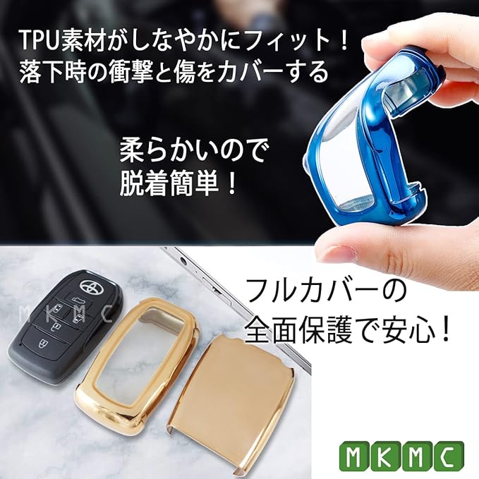 トヨタ車カスタムパーツ。新型ヴォクシー ( ヴォクシー90系) / 新型ノア ( ノア90系 ) / ヤリス / ヤリスクロス / カローラ / カローラクロス / カローラスポーツ / アクア / シエンタ / ハイブリッド に対応したスマートキーケースです。 ※注)年式によってスマートキー形状が異なります。必ず車のスマートキーと商品画像 『適合スマートキー形状』をご確認のうえご購入お願いいたします。 TPU素材の全面保護タイプのキーケースです。オシャレなカラーバリエーションからお好みの色をチョイスして自分好みのスマートキーにしてみてはいかがでしょうか。 専用キーホルダー付属。大切な車の鍵を擦り傷や不意の落下から守ります。カラビナはズボンやバッグなどに掛ける事ができるので紛失防止にも役立ちます。 MKMCのスマートキーカバーでスマートキーをカスタムしてお楽しみいただけたら幸いです。