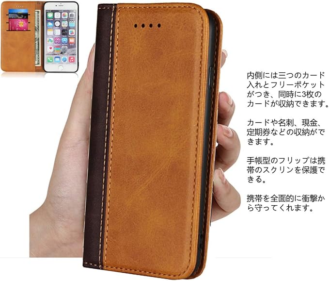 ●【上質な素材】外部は上質な合皮レザー素材を採用しており、放熱性が良く、傷や埃を防ぐことができます、滑りにくく、指紋、油分などもつきにくく。インナーケースは弾力性の柔軟黒TPU素材を採用しており、角までしっかり保護できるケースです、柔軟性があり本体への装着脱着も簡単です。衝撃吸収機能あり、しっかりの二重保護でお携帯を守り抜きます。