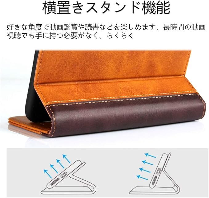 ●【スタンド機能】: 横置き水平スタンド機能を備えており、好きな角度で動画鑑賞や読書などを楽しめます。多角度調整可能で、PUレザーケースとTPU内ケースとの摩擦が大きくなり、ブラケットが倒れにくくなります。