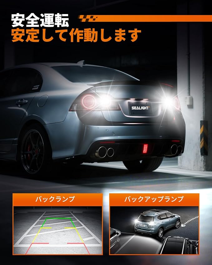 【新車検対応&出品者保証】SEALIGHT T16 LED 後退灯 SP52シリーズは高輝度の明るさだけでなく、実用性のある配光性能を目指し、運転席から見 やすい配光をご提供し、快適な点灯体験をもたらします。新車検対応もしている製品なので信頼性が高いです。SEALIGHT 保証延長のお問い合わせ:保証期間を 2 年→ 2年6ヶ月に延長しました!※メールでのお問い合わせは24時間365日受け付けています。初期不良やご使用中の製品トラブルがございましたら、まずはお問い合わせください。