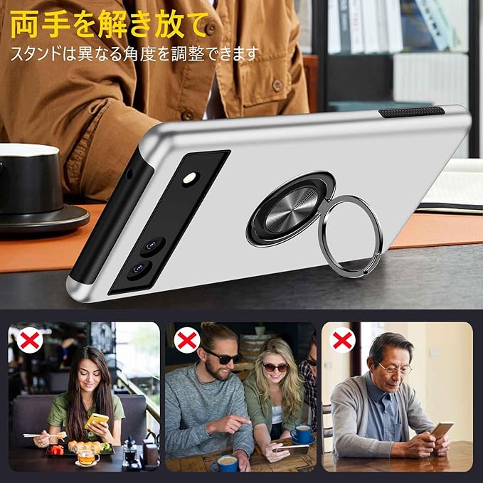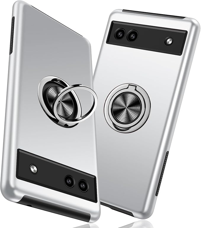 Google Pixel 6A 用ケース リング 耐衝撃 衝撃吸収 全面保護カバー TPU+PCバンパー 二重構造 米軍MIL規格 車載ホルダー対応 擦り傷防止 滑り止め 薄型 軽量 グーグル ピクセル 6a 用カバー 6.1インチ 耐久 指紋防止 おしゃれ 人気 携帯カバー 銀 MZ86-03
