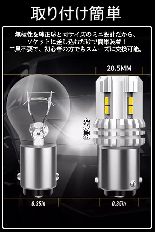 無極性&取付簡単: この led t20 バックランプ は無極性ですので、純正球と簡単に交換でき、原箇所のまま差し込むだけで完了。バルブにアクセスする時間を除けば数秒で取り付けが完了のため、施工時間や手間が大幅に短縮できる。