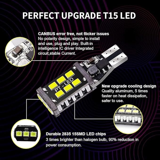 Biqing 4pcs T15 LED電球 LED W16W互換LED 車用 T15 LED バックランプ ポジション/ライセンスランプ/ナンバー灯/ルームランプ