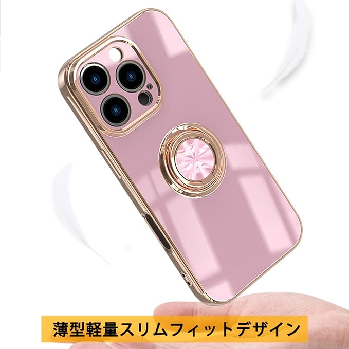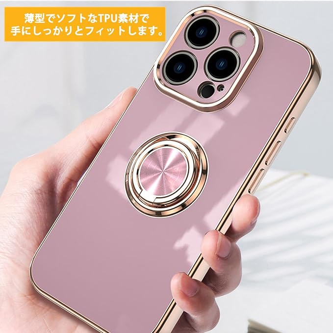 Google Pixel 9 9Pro 用 ケース 360度回転式 一体型スマホリング スタンド機能 TPU グーグル ピクセル9 プロ リング付き メッキ加工 薄型 ソフト 耐衝撃 ストラップホール (Google Pixel 9 / Pixel 9 Pro, ブラック)