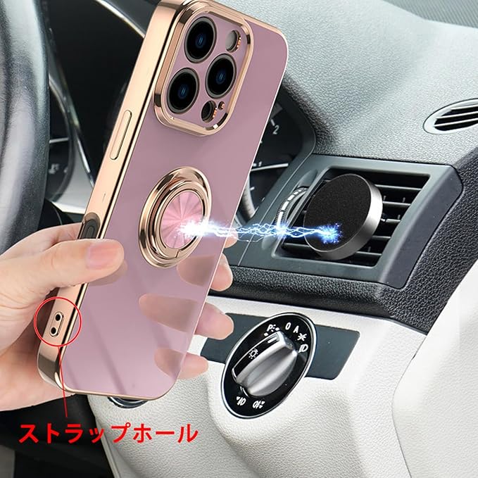 【マグネット式車載ホルダー】 背面リング部分の土台は金属製なので、マグネット式の車載スマホホルダー装着可能です。